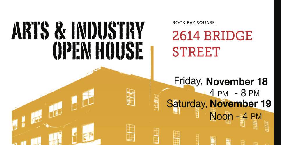 Rock Bay Square Arts and Industry Open House: Allan Toews, Anna Curtain, Billy Cook Design, Blue Otter Furniture, Christina Hilborne, Lynda Lombardi, Jenny Clark, Karina Kalvaitis Fine Art, Labyrinth Leather Craft, Lisa Jackson Studio, Mark Laver, Now Studios, Precious Metal Works, Rande Cook , Still Design, Susan Geddes Fine Art