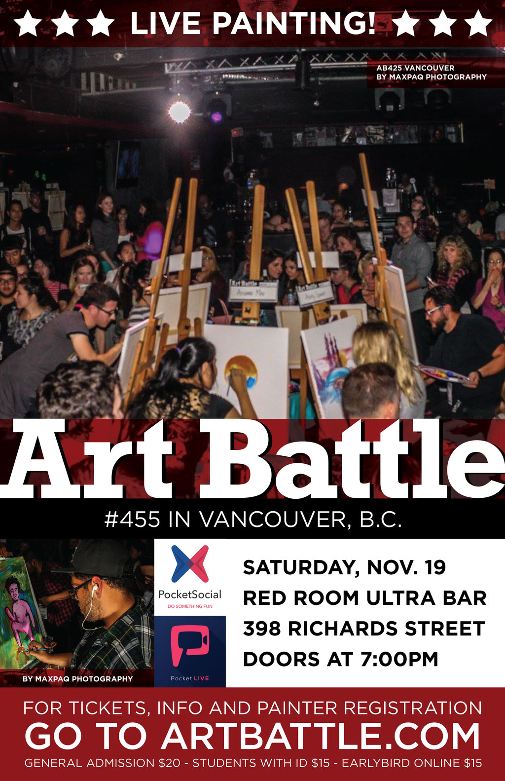 Doors open at 7PM, all Vancouver AB events are 19+ http://artbattle.ca/ab/ab455-vancouver/