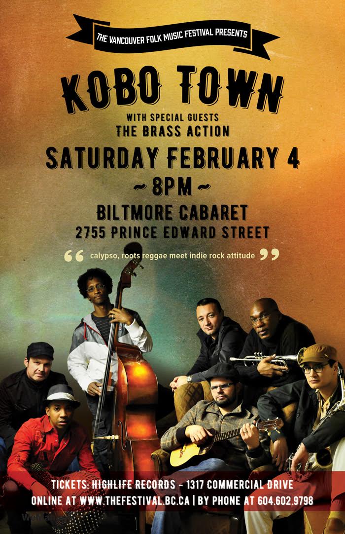 Kobo Town has emerged in recent years as one of the most original artistic voices of the Caribbean diaspora and one of the grooviest touring bands anywhere. Their music has been described as "a unique, transnational composite of rhythm, poetry and activist journalism." (Exclaim!).