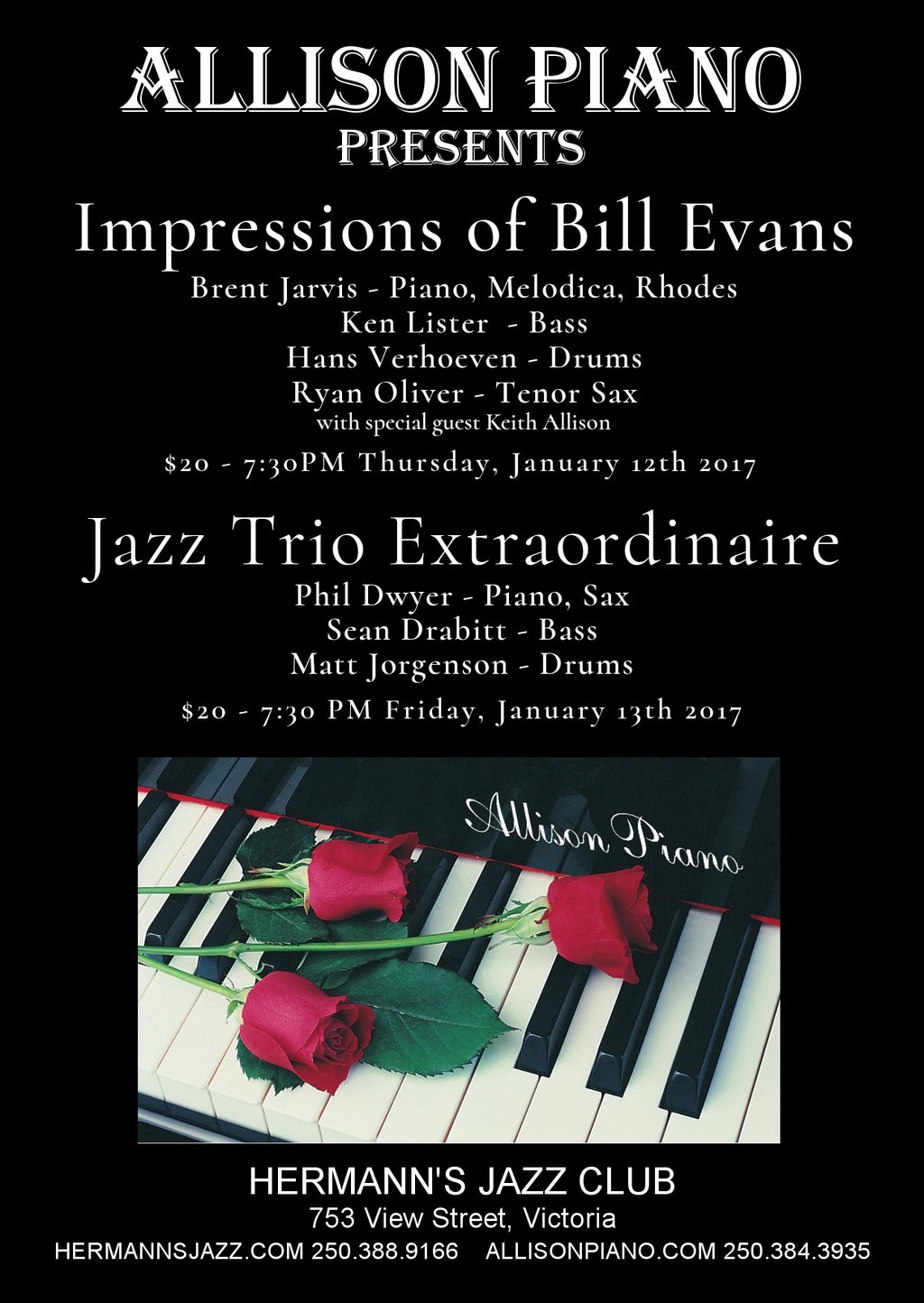 Thu. January 12th 2017 Hermann's Jazz Club Victoria BC $20