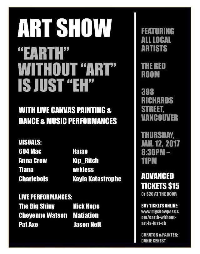 Visuals by 604 Mac, Anna Crow, Charlebois, Haiao, Troy Steen aka wrkless, Kip_Ritch, Kayla katastrophe, Danielle Genest and many more.... Live music by The Big Shiny, Pat Axe, Nick Hope, Matiation, Jason Nett, Friends with the help, Greg b...