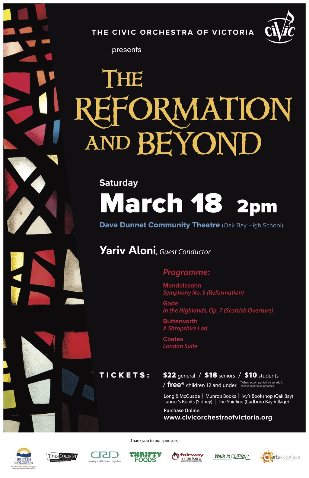 The Reformation and Beyond: The Civic Orchestra of Victoria @ Dave Dunnet Theatre  Mar 18 2017 - Feb 5th @ Dave Dunnet Theatre