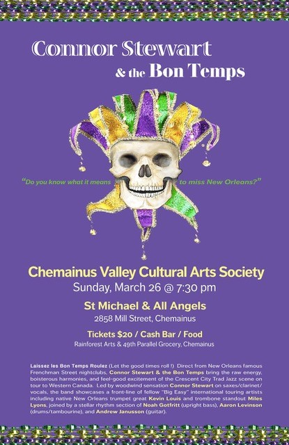 They perform for the Chemainus Valley Cultural Arts Society on Sunday, March 26th (Food, Cash Bar).