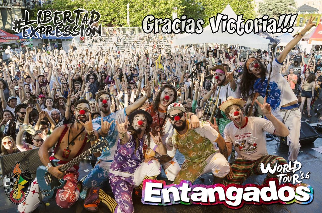 Entangados as a band displays explosive energy, musical talent and humour on and off stage. But they also have the power to make almost anyone they perform for or come into contact with feel welcomed and relaxed no matter who they are. Musically the band combines ska, rock, cumbia, salsa and Balkan folk music. In 2016 Entangados closed out Victoria's 17th Annual Ska & Reggae Festival with an unforgettable performance in front of thousands who witnessed it at Ship Point Inner Harbour.