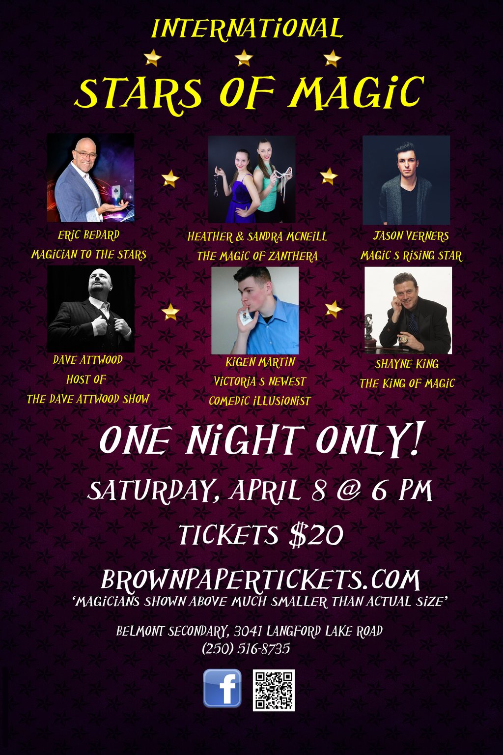 International Stars of Magic: Eric Bedard, Jason Verners, Shayne King, David Attwood, Heather and Sandra McNeill, Kigen Martin @ Belmont Secondary School Apr 8 2017 - Feb 8th @ Belmont Secondary School