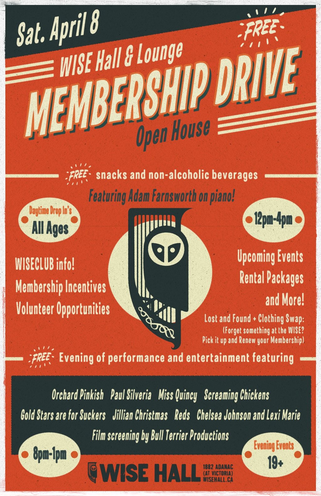 Calling all Vancouver music lovers, event attenders, and community builders!! Ever think about becoming a WISE Member? Ever wonder what the perks for volunteering at a show might be? Ever ponder what the interesting history of the WISE Club is all about? Well, now is your chance to discover the answers to all of these questions at one amazing event! The WISE is excited to announce we will be holding an Open House/Membership Drive on Saturday, April 8th! There will be all kinds of incredible things happening at The WISE from the afternoon well into the wee hours and the entire event is FREE!!