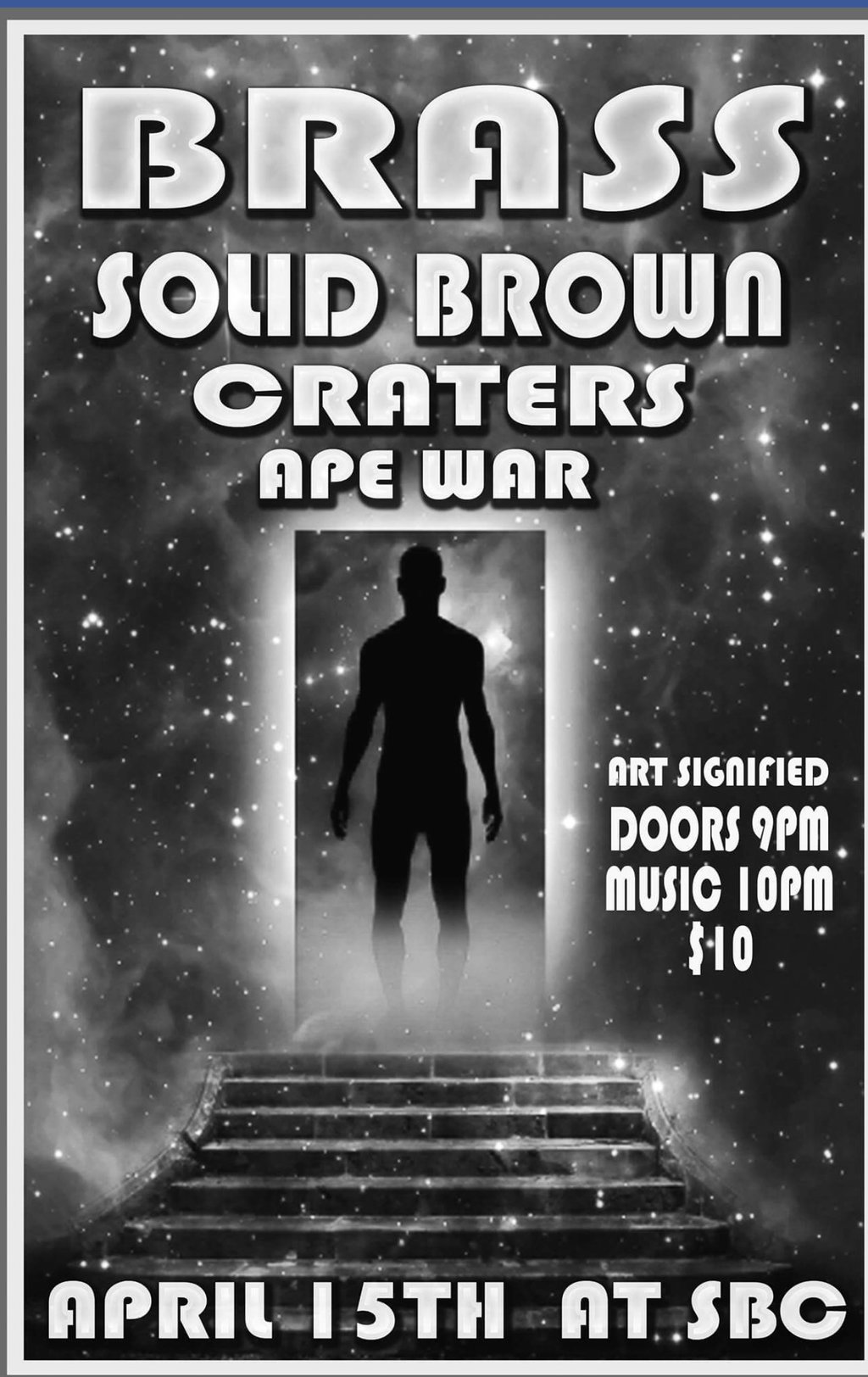 BRASS/SOLID BROWN/CRATERS/APE WAR Saturday, April 15th Art Signified present...