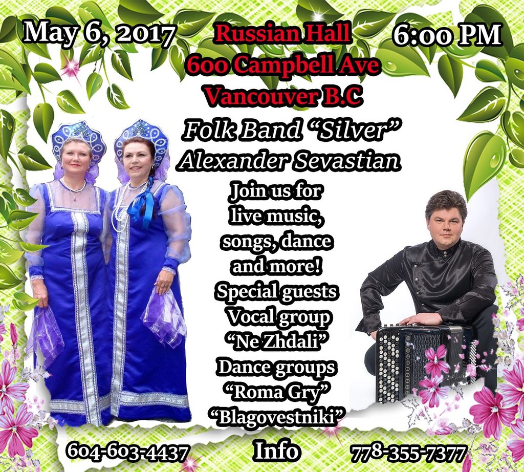 Sat. May 6th 2017 The Russian Hall Vancouver BC $20-$30