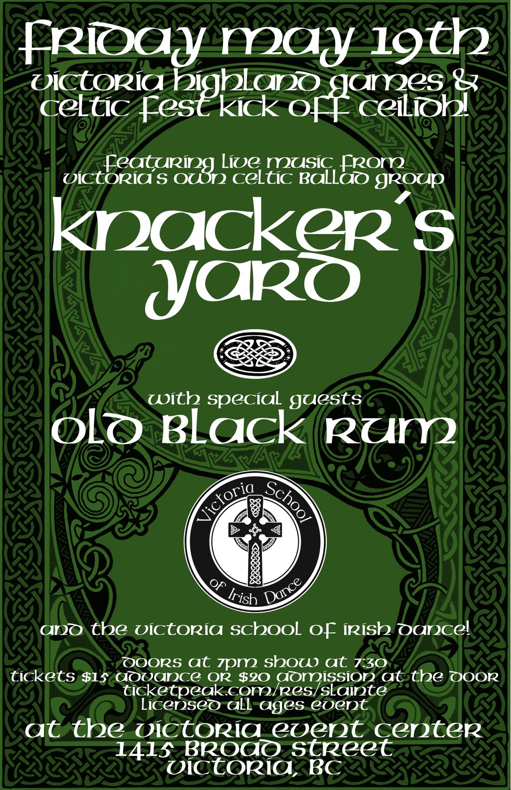 Come get warmed up for the Victoria Highland Games* by joining Knacker's Yard, Old Black Rum, and the Victoria Irish Dancers for a fun filled night of traditional Celtic and English music!!!