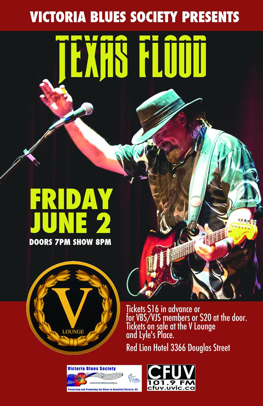 Victoria Blues Society presents Texas Flood a Tribute to Stevie Ray Vaughan: Texas Flood, Renovation Blues Band @ V-lounge Jun 2 2017 - Mar 23rd @ V-lounge