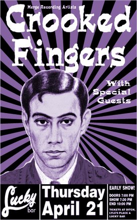 Featuring Eric Bachmann (formerly of the Archers of Loaf), Seattle-based Crooked Fingers’ latest album Dignity and Shame (on Merge Records, produced by veteran Martin Feveyear) has received critical acclaim across the US and Canada. With Vic's own Clay George. (www.crookedfingers.com). Tix available at Lyle's and Ditch.