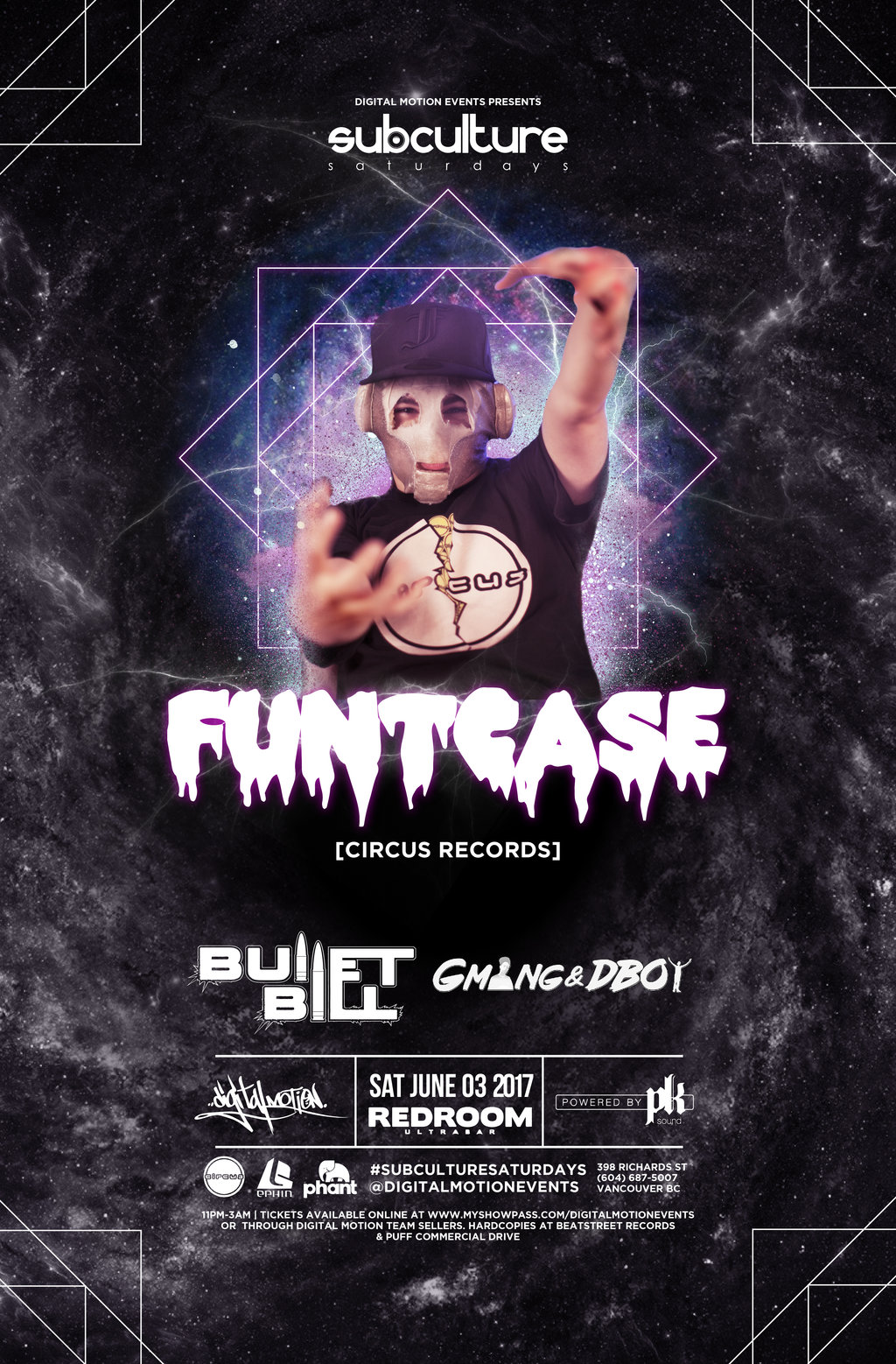 Funtcase (Circus Records) w/ Bullet Bill and Gmang and Dboy at SUBculture Saturdays @ The Red Room Jun 3 2017 - Nov 10th @ The Red Room