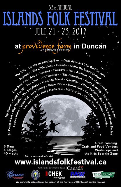 The Cowichan Folk Guild (CFG) will proudly present the 33rd Islands Folk Festival on July 21 – 23, 2017 at Providence Farm in Duncan, BC. For directions, click here. Music lovers from all over Vancouver Island and the Gulf Islands are invited to join this celebration of music, featuring all the best elements of a homegrown folk festival.