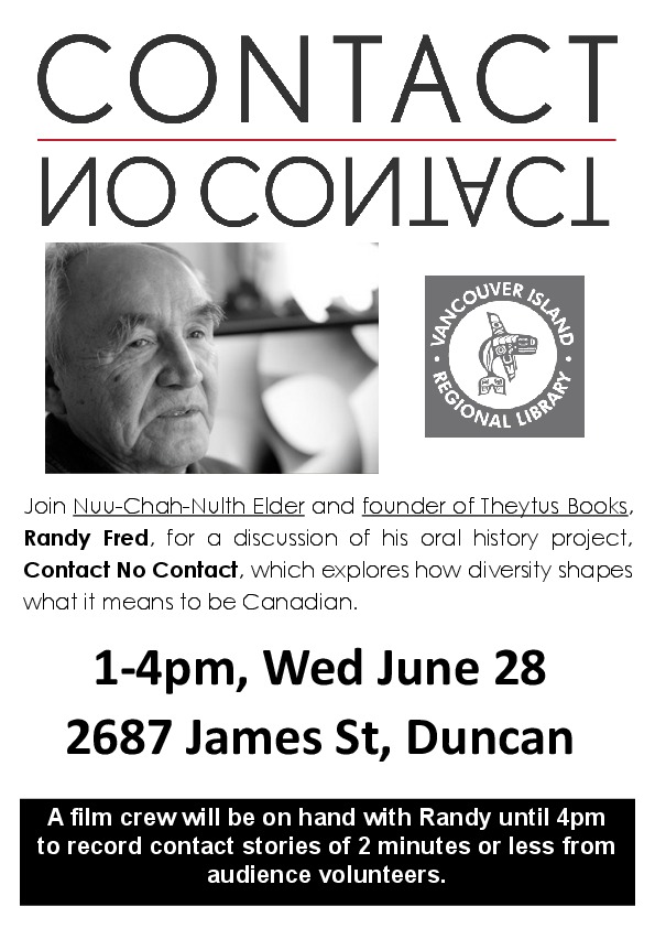 Join Nuu-Chah-Nulth Elderand founder of TheytusBooks, Randy Fred, for a discussion of his oral history project, Contact No Contact, which explores how diversity shapes what it means to be Canadian.