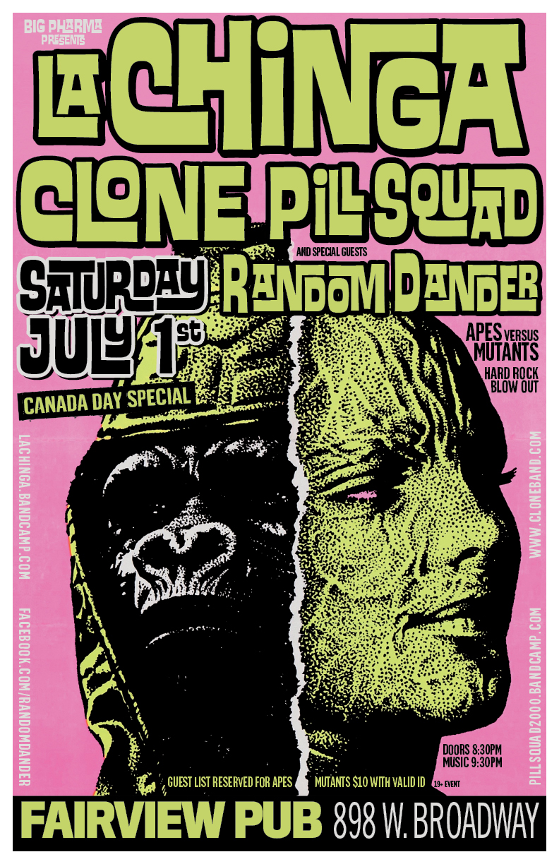 CANADA DAY SUPER ROCK SPECIAL Featuring power trio rockers LA CHINGA; glam hard rockers CLONE; garage punk rockers PILL SQUAD; and heavy groove rockers RANDOM DANDER. $10 cover / 19+ event