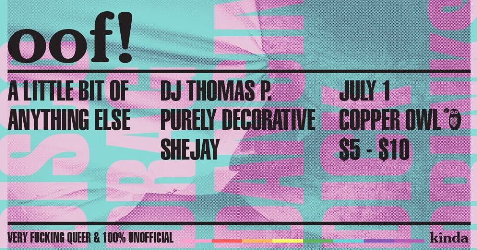 Oof!: DJ Thomas P, Purely Decorative, SheJay @ Copper Owl Jul 1 2017 - Dec 23rd @ Copper Owl