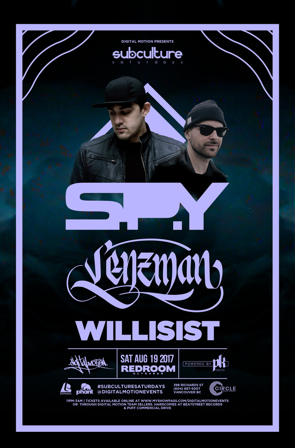 S.P.Y., Lenzman, Willisist @ The Red Room Aug 19 2017 - Nov 9th @ The Red Room