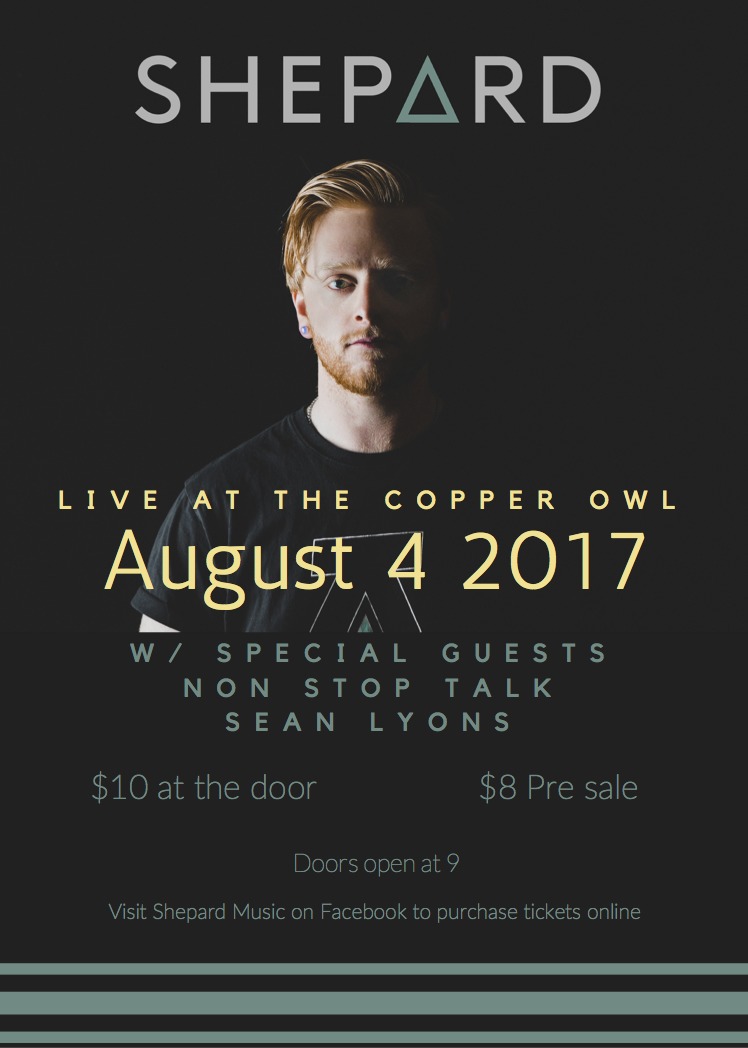 See SHEPARD live at the Copper Owl in downtown Victoria, BC with special guests Non Stop Talk and Sean Lyons.