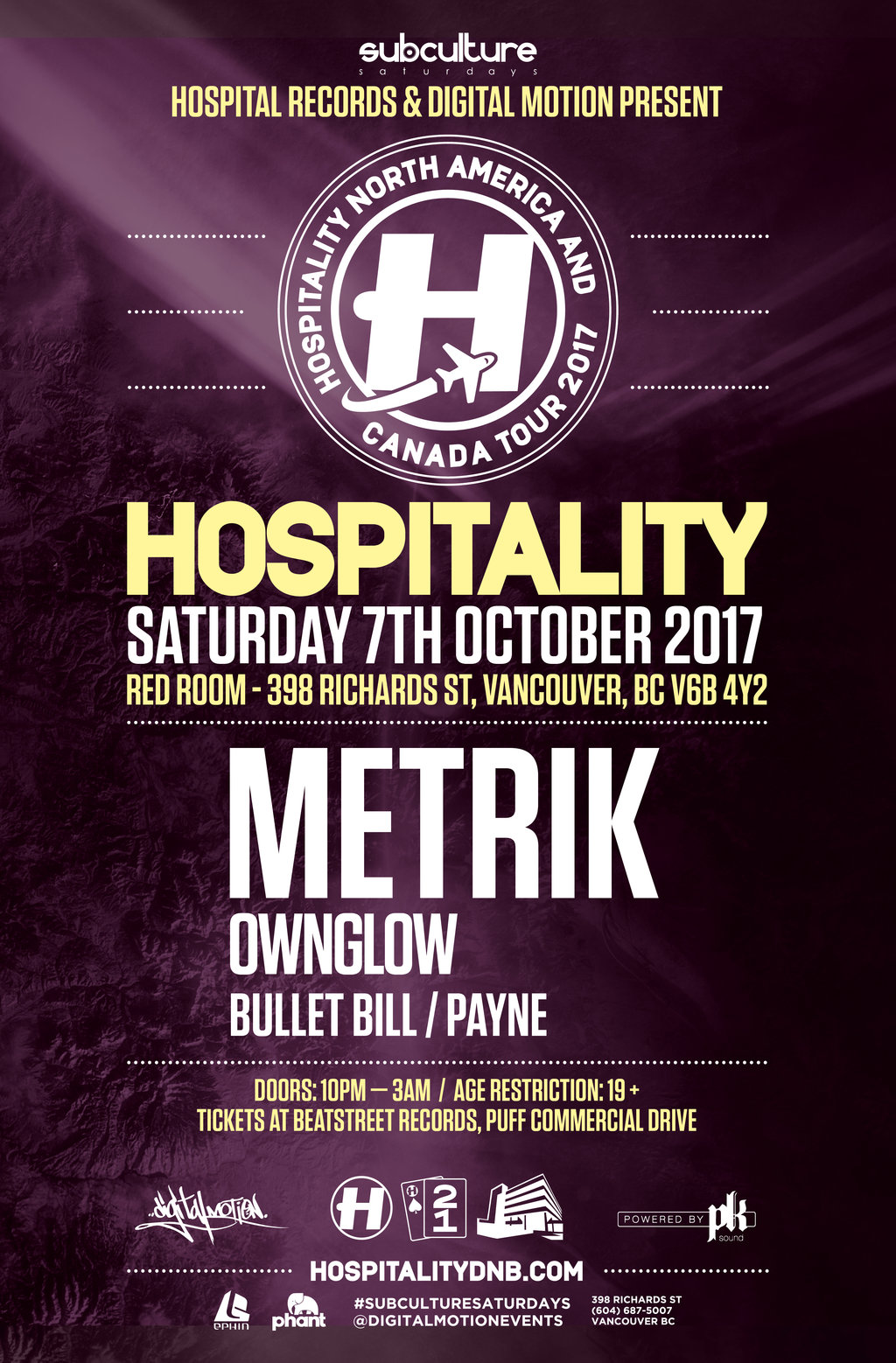 HOSPITALITY TOUR: METRIK, Ownglow @ The Red Room Oct 7 2017 - Nov 9th @ The Red Room