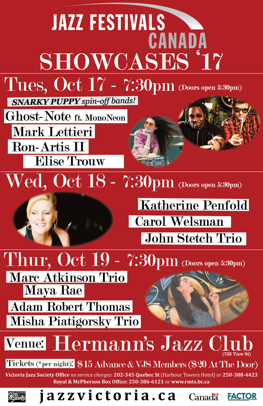 As part of these meetings, the VJS, on behalf of Jazz Festivals Canada, is facilitating a Showcase featuring musicians/bands from across Canada and the United States at Hermann’s Jazz Club on October 17 through 19, 2017. The general public is invited to attend these ticketed performances. These Showcases will feature a number of separate performances each night.