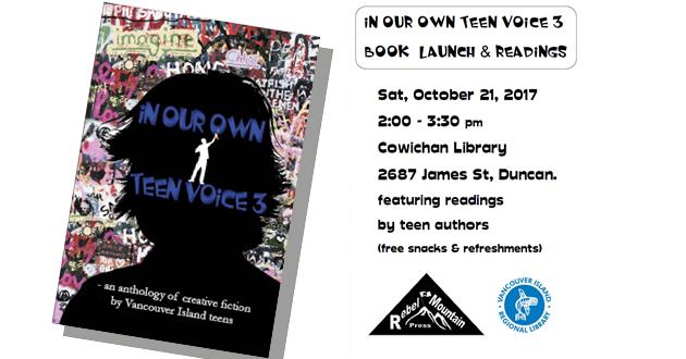 In May, Vancouver Island teens entered a writing contest. In Our Own Voice is the resulting anthology. Come hear the authors read their work and celebrate the launch of this book.