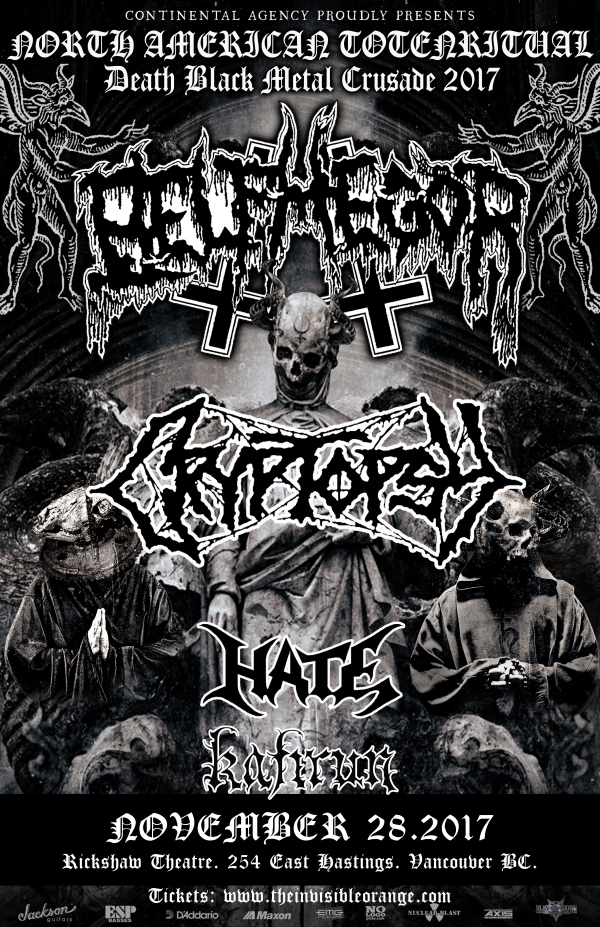 Death is upon us - Belphegor unleashes their bone crushing live performance in support of their album TOTENRITUAL. The addition of Cryptopsy, Hate and Kafirun promises complete desecration for any of those brave enough to walk through the gates of hell when they open on November 28th at the Rickshaw. Embrace the evil that welcomes you as you will never enter this realm the same again.