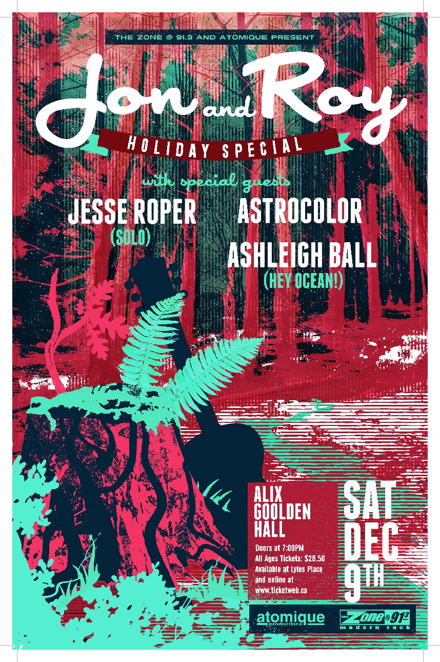 Jon and Roy bring their Holiday Special back to Alix Goolden Hall to kick off the holiday spirit and festivities by celebrating some of the west coast's best talent! The Holiday Special is in it’s 9th year and is a revue style event with other bands performing short sets before Jon and Roy. Always a diverse and talented line up of musicians, this years is no exception. Joining our hosts are indie-pop darling Ashleigh Ball from Hey Ocean, live ambient/funky electronic band Astrocolor and blues-rooted, soul-rocker Jesse Roper performing a solo acoustic set.