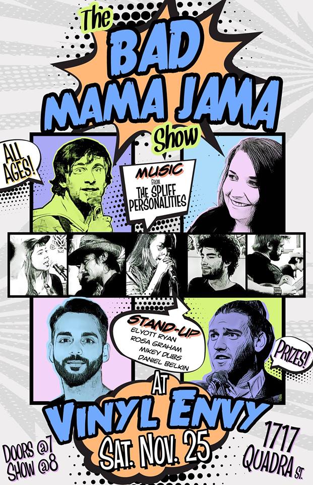 The Bad Mama Jama is back! We've got an action packed show for you featuring music by the wildy funky and always entertaining The Spliff Personalities followed by local Stand-up comedy favourites Rosa Graham, Elyott Ryan, Quincy Thomas and Mikey Dubs. Hosted by Daniel Belkin. Prize Giveaways including records and more!