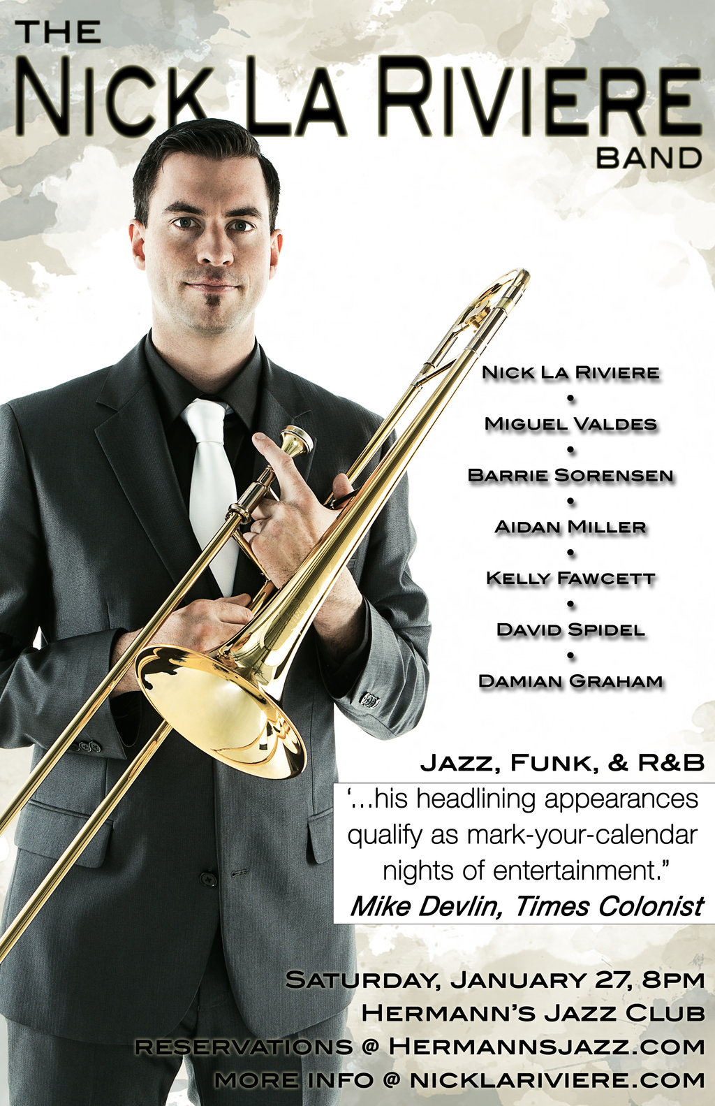 Nick La Riviere Band @ Hermann's Jazz Club Jan 27 2018 - Feb 7th @ Hermann's Jazz Club