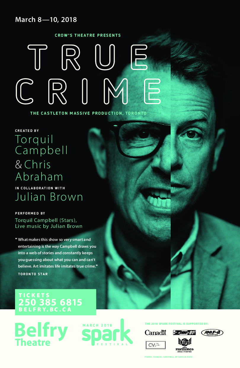 True Crime: Torquil Campbell, Chris Abraham, Julian Brown @ Belfry Theatre Mar 8 2018 - Dec 23rd @ Belfry Theatre