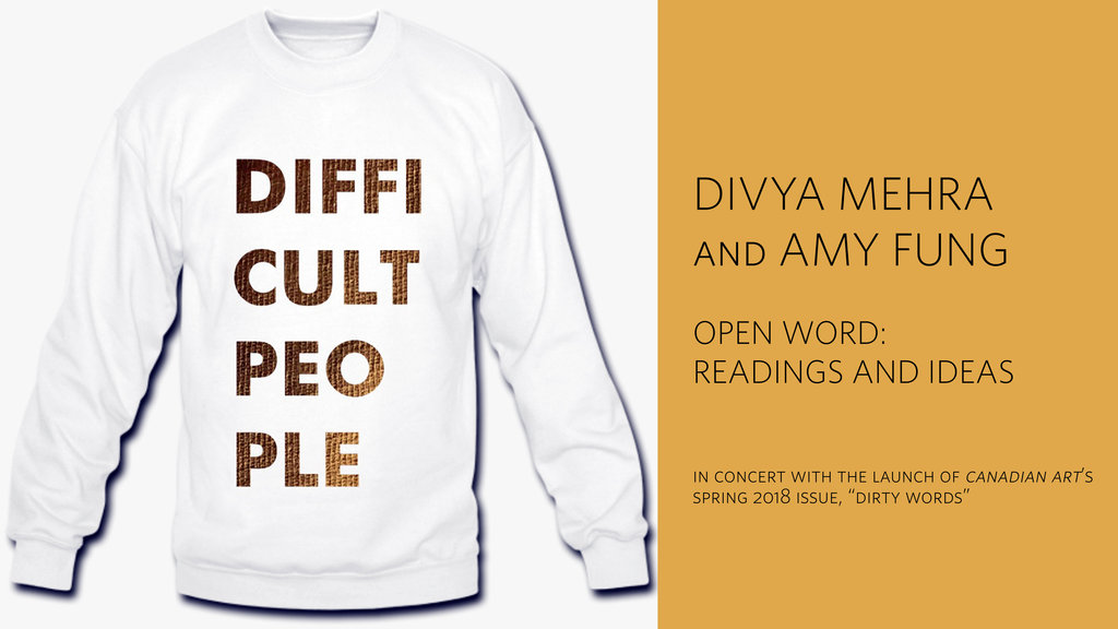 Open Word: Difficult People: Divya Mehra, Amy Fung @ Open Space Mar 22 2018 - Dec 22nd @ Open Space