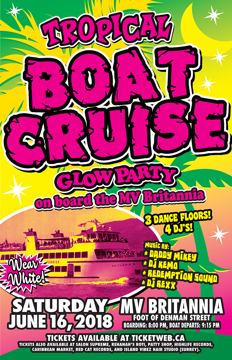 TROPICAL BOAT CRUISE GLOW PARTY: Daddy Mikey, DJ Kemo, REDEMPTION SOUND, DJ Rexx @ MV BRITANNIA Jun 16 2018 - Feb 4th @ MV BRITANNIA