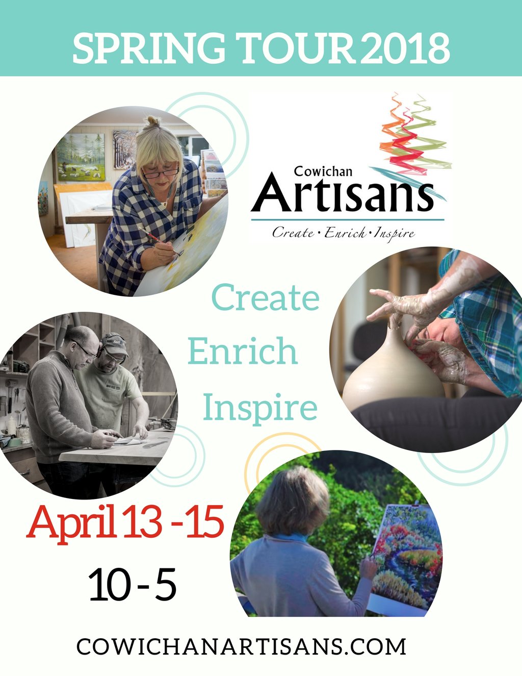 Cowichan Artisans Spring Studio Tour: Laurel Hibbert, Mary Fox, Cathi Jefferson, Live Edge Design, Ancient Art of Stone, Cam Russell, Karen Trickett, Peggy Brackett, Jo Ludwig, Ken Broadland, Jennifer Lawson, Bonnie Schmaus