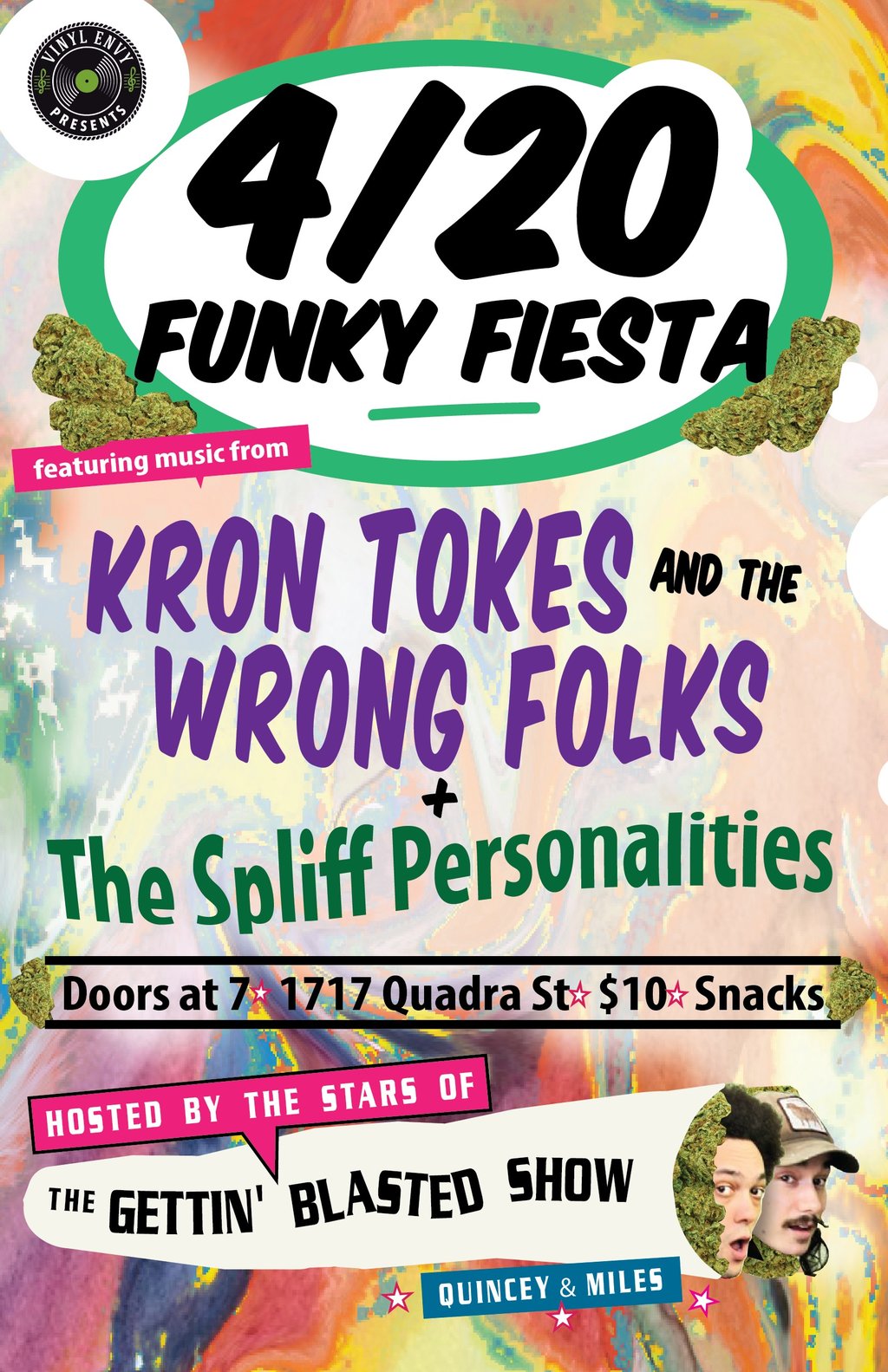 4/20 Funky Fiesta: Kron Tokes and The Wrong Folks, The Spliff Personalities, The Gettin' Blasted Comedy Duo @ Vinyl Envy Apr 20 2018 - Dec 21st @ Vinyl Envy