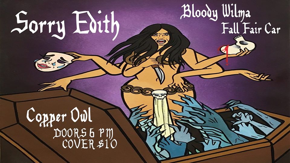 Sorry Edith and local Victoria bands Bloody Whilma and Fall Fair Car, are playing an early show at the vintage Copper Owl!