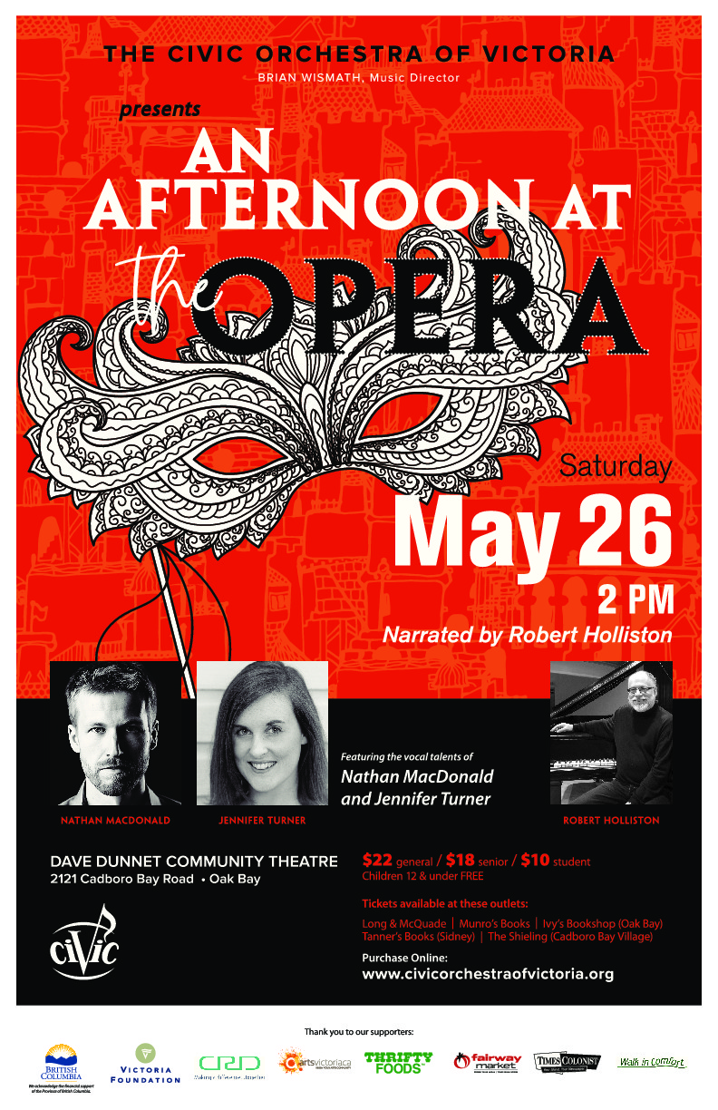 An Afternoon at the Opera: The Civic Orchestra of Victoria, Robert Holliston [Narrator], Jennifer Turner [Soprano], Nathan MacDonald [Baritone] @ Dave Dunnet Theatre  May 26 2018 - Feb 5th @ Dave Dunnet Theatre