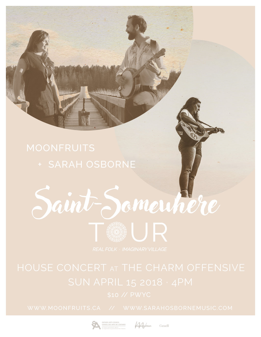 Sarah Osborne Music’s sultry songwriting joins Moonfruits’ soaring harmonies in a captivating bilingual evening of story and song. Inviting listeners on a stroll of Saint-Somewhere - an imaginary village making a hard but hopeful go of the here and now - the artists celebrate the coming of spring with a Sunday afternoon house concert at The Charm Offensive in beautiful Victoria, during their first tour of BC together.