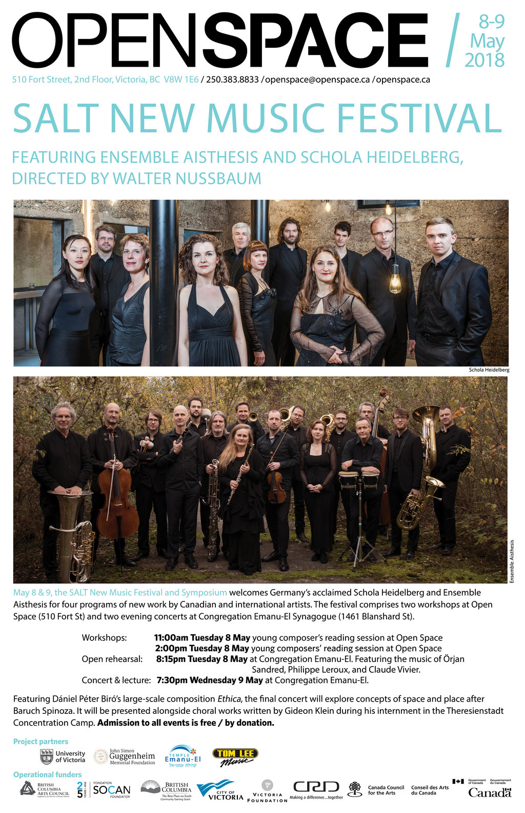 SALT New Music Festival: Open Rehearsal: Ensemble Aesthesis, Schola Heidelberg @ Congregation Emanu-el May 8 2018 - Dec 22nd @ Congregation Emanu-el