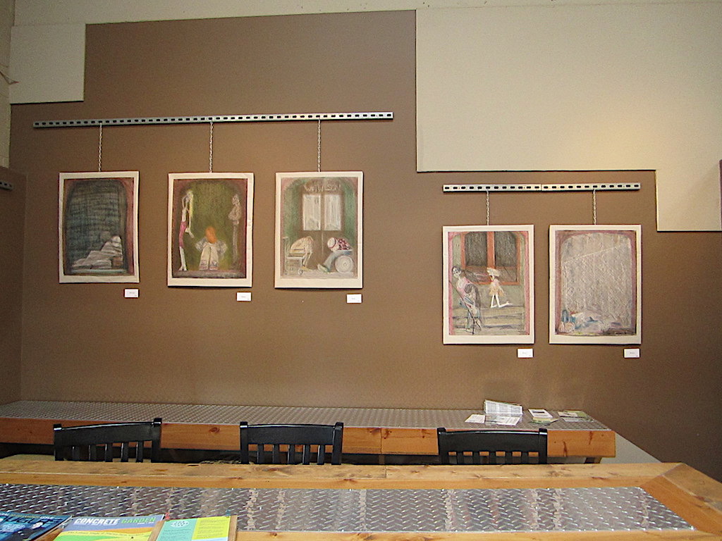 This series of nine mixed media drawings (graphite, oil pastel, white charcoal, crayon on Canson Paper, 25 x 20 in.) called out for attention after a bus ride on East Hastings Street in downtown Vancouver. Along that stretch, you witness every nook and cranny occupied by afflicted humanity.