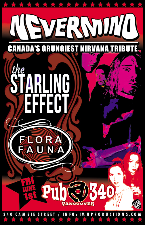 . Friday, June 1st IMU presents NEVERMIND Nirvana Tribute, STARLING EFFECT & FLORAFAUNA @ Pub 340, 340 Cambie Street. Doors 8pm / Show 9pm / $10 cover