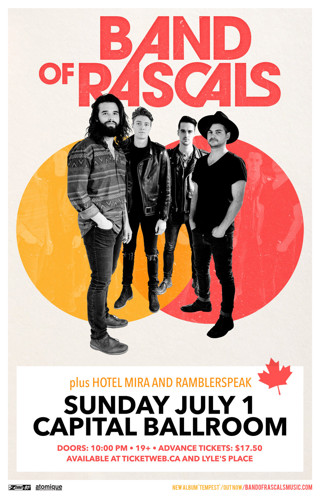 Band of Rascals, Hotel Mira, Ramblerspeak @ Capital Ballroom Jul 1 2018 - Dec 22nd @ Capital Ballroom