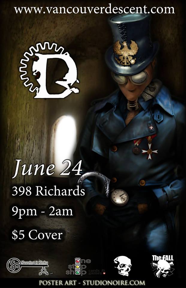 Vancouver Descent boasts an exclusively nonexistent dress code. “Why?” you ask. Well, it’s simple: We want everyone who comes to our events to be comfortable. New people entering the scene, or just checking it out, may not have figured out their style. So you may be wondering what is acceptable. Jeans and a t-shirt? No problem. Full out Goth? Totally AWESOME. Punk kid? Rock god? Sk8tr girl? Great! Sweet! Wicked! Feel like going all out in some jaw-dropping ensemble? You’re totally welcome to. Come how you want to but we are strongly encouraging everyone to dress up in their favourite Gothic style.