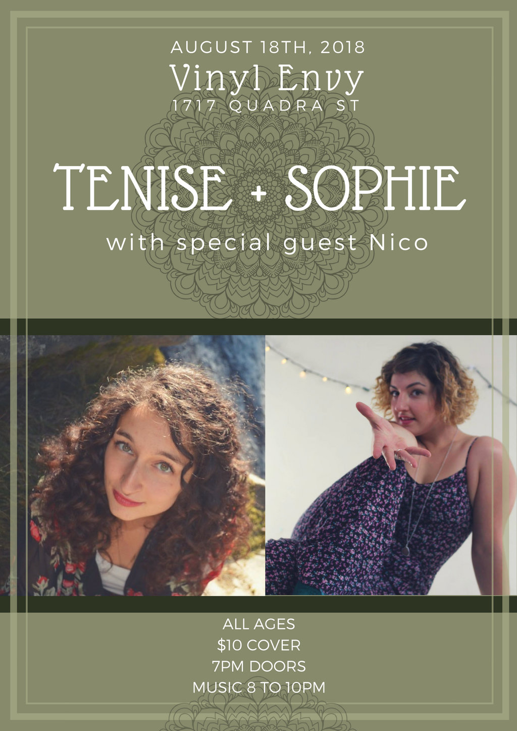 Summer is in full swing and we're celebrating with a tour! Come watch Sophie D'Orléans, lead singer from The Sophistocrats and Tenise Marie Music perform solo sets with special guest Nico from the local band Good Girls performing solo!