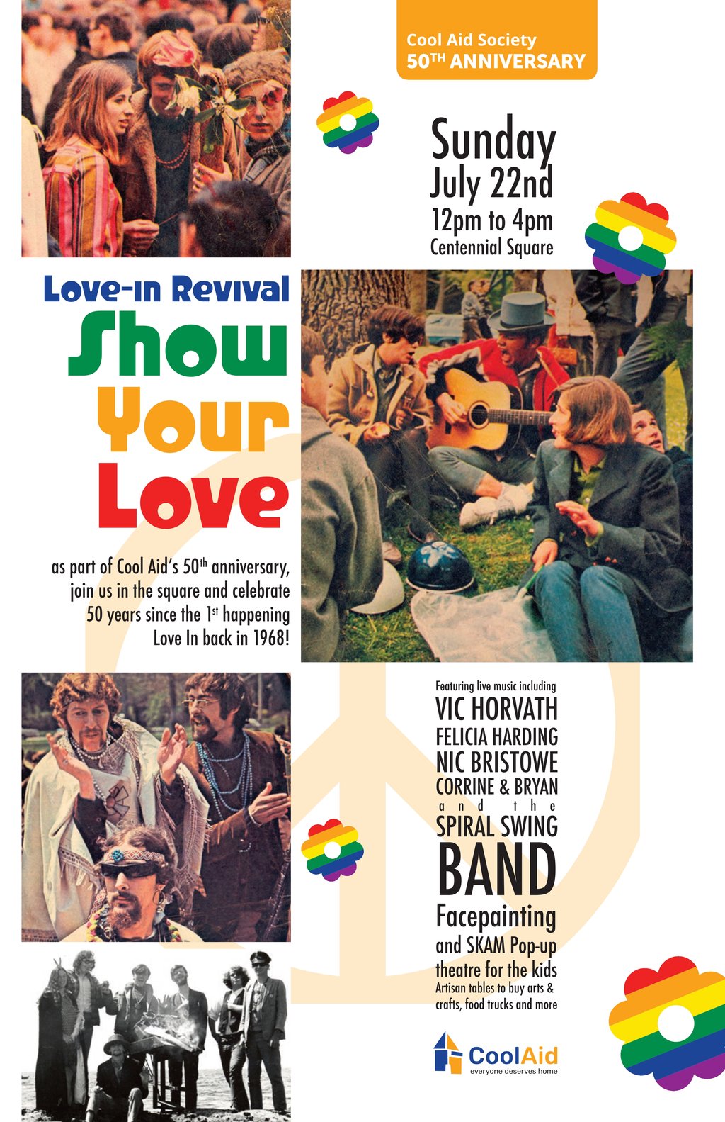 Love-In Revival "Show Your Love" as part of CoolAid's 50th anniversary, join us in the square and celebrate 50 years since the first happening Love-In back in 1968!