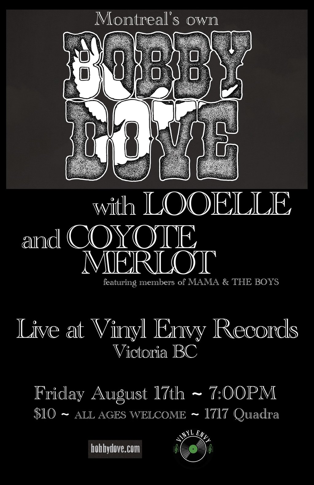 Bobby Dove (Montreal, QC), Looelle, Coyote Merlot @ Vinyl Envy Aug 17 2018 - Dec 22nd @ Vinyl Envy