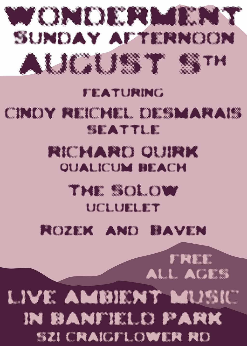 Wonderment:  The Modular Synthesis Edition: Cindy Reichel Desmarais , The SoLow , Richard Quirk, Rozek, Baven  @ Banfield Park Aug 5 2018 - Feb 4th @ Banfield Park