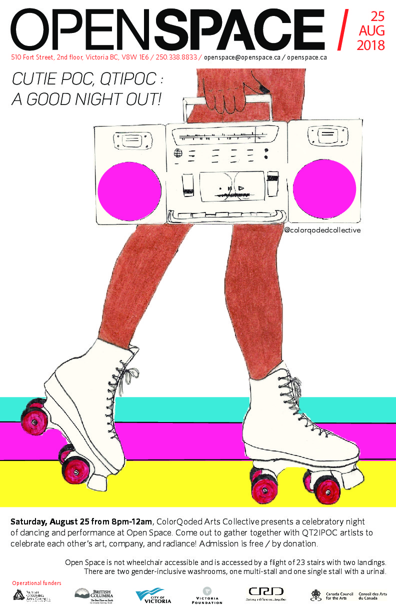 Open Space and ColorQoded Collective are proud to present a night of dancing and celebration on Saturday, August 25 from 9pm-12am, doors at 8pm. Come out to gather together with QT2IPOC artists and celebrate each other’s art, company, and radiance! We are also very excited to have a very special guest, Maiden China, joining us from Vancouver!