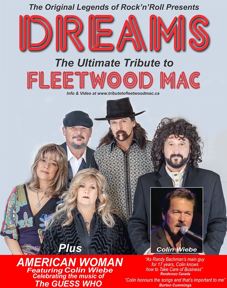 Dreams – the Ultimate tribute to Fleetwood Mac, is an authentic sounding, seven-piece tribute to Fleetwood Mac. They perform in full costumes, similar to the actual styles worn by the original Fleetwood Mac. The band of professional musicians from Vancouver BC, has played may shows over the last few years in casinos, theatres and corporate events all around the world. Some of those places include Las Vegas, the Dominican Republic, Toronto, Vancouver, Calgary, Edmonton and Regina, to name a few. You will be amazed at how close Dreams – North America’s tribute to Fleetwood Mac, looks and sounds like the original Fleetwood Mac. They take you back in time so you can experience this amazing music all over again!