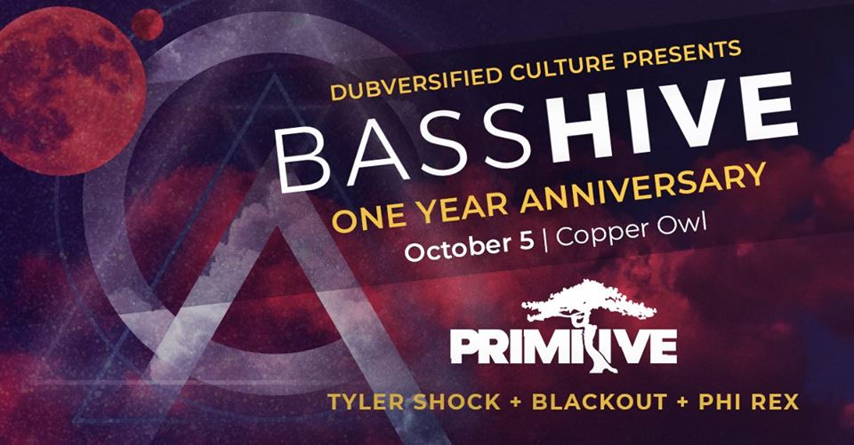 Bass Hive One Year Anniversary feat.: Primitive, Tyler Shock, Blackout , Phi Rex @ Copper Owl Oct 5 2018 - Dec 23rd @ Copper Owl