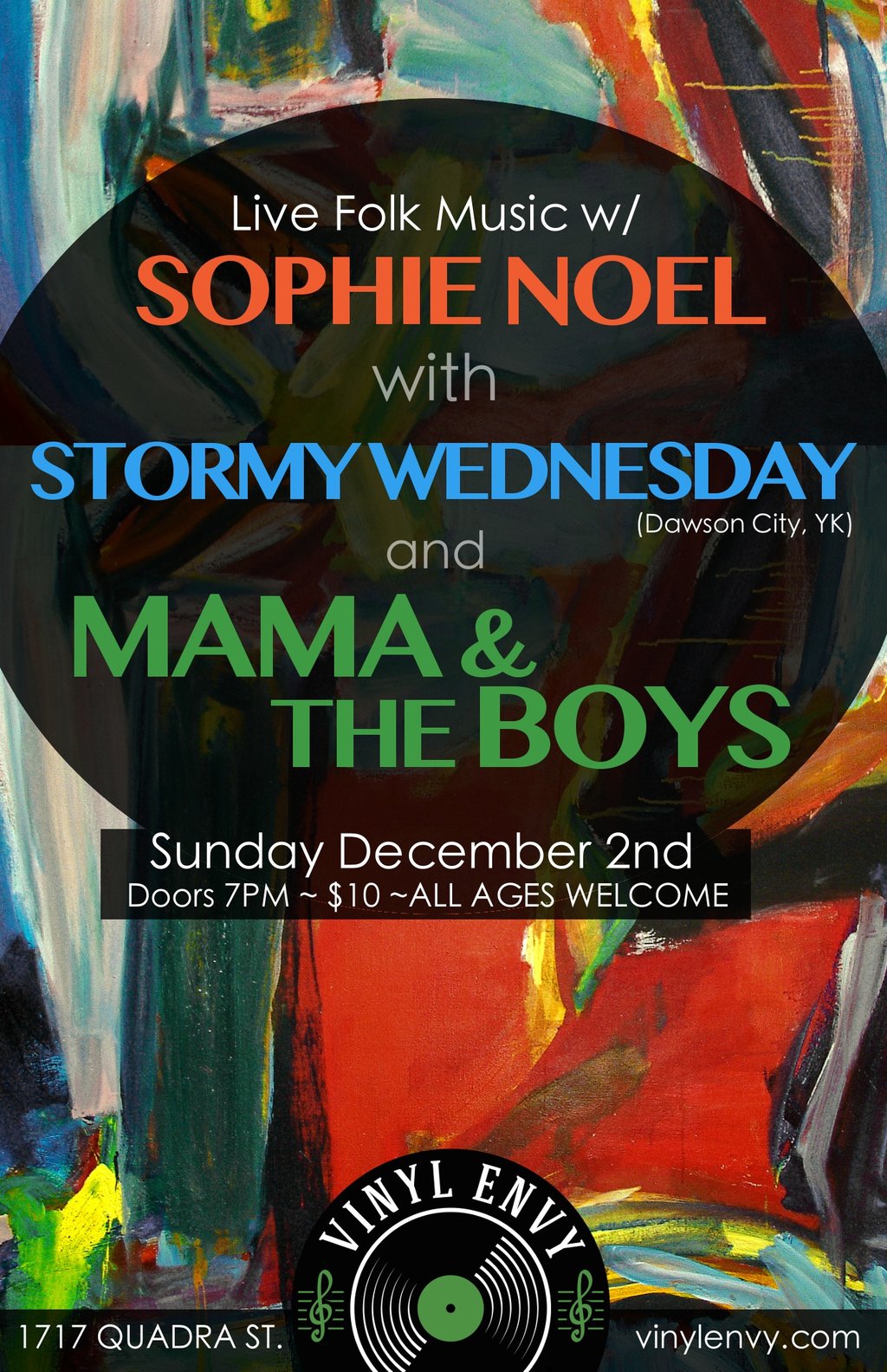 Sophie Noel, Stormy Wednesday  (Dawson City, YK), Mama and the Boys  @ Vinyl Envy Dec 2 2018 - Dec 21st @ Vinyl Envy